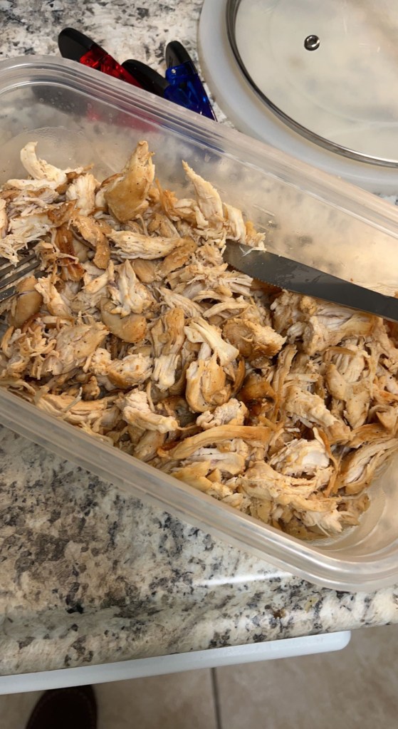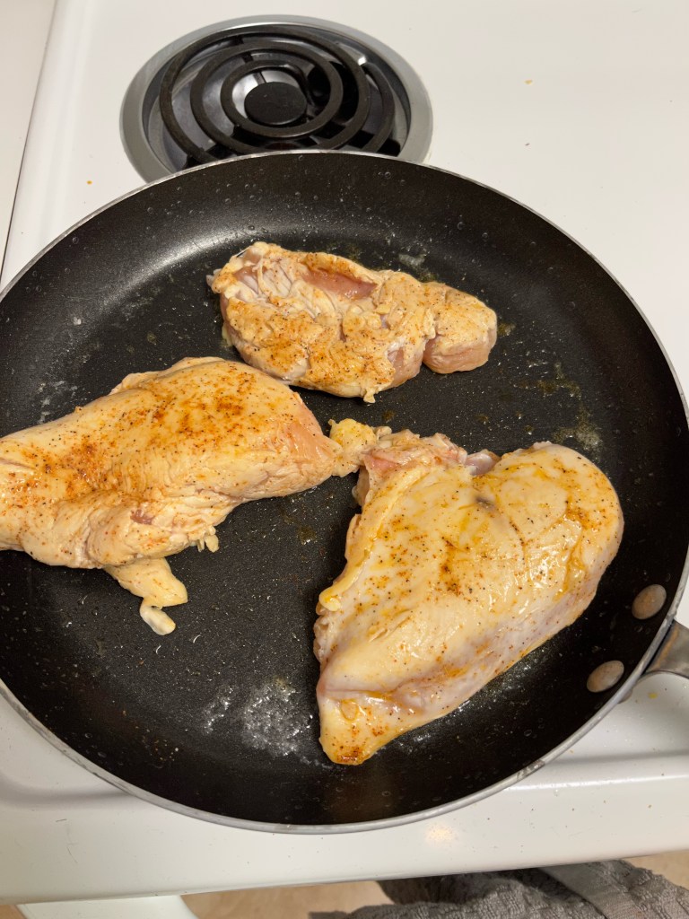 Earlier in the day, I went and cooked some chicken breasts to add to the soup. I decided to spice it up a bit, seasoning it with Creole seasoning. You’re welcome to add whatever spices you want to your chicken, that’s just what I went with.