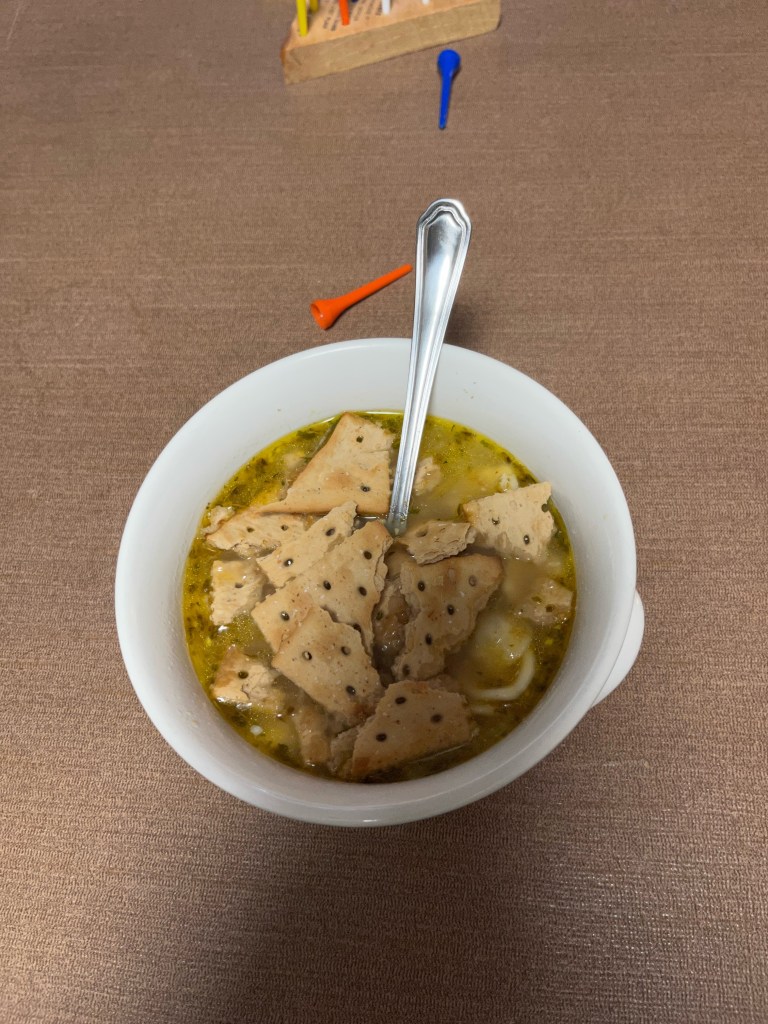And there you go: soup! I added crackers to mine because I like the texture, but it’s personal preference. It tasted pretty good to me, and I have plenty of leftovers for future meals.
