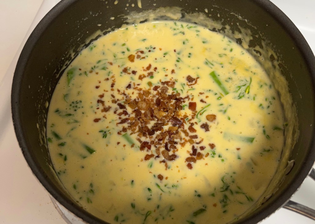 Once the cheese is melted, and the soup is thickened, take it off the heat and you’re done! I added bacon bits to mine for extra flavor and texture, but the bacon and cayenne pepper are not necessary if you don’t want it.