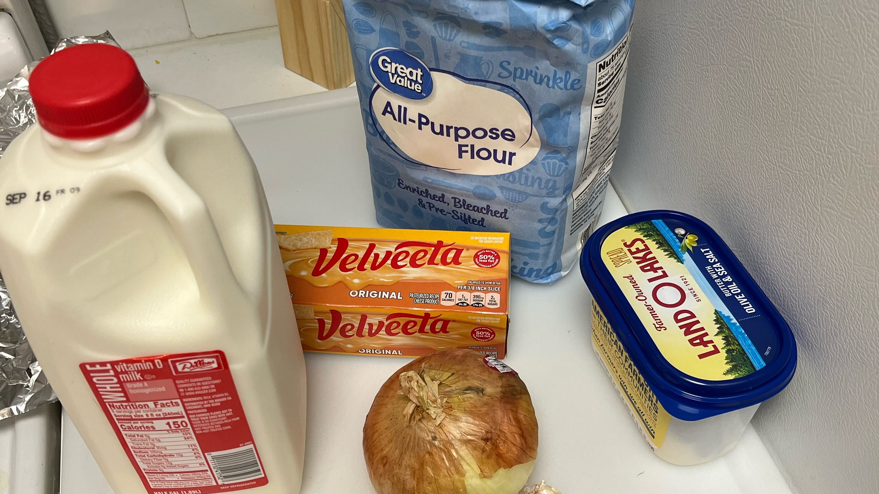 For one serving, I diced up half an onion and put the other half away for future soups. I also cut up the fresh broccoli but keep them separated.