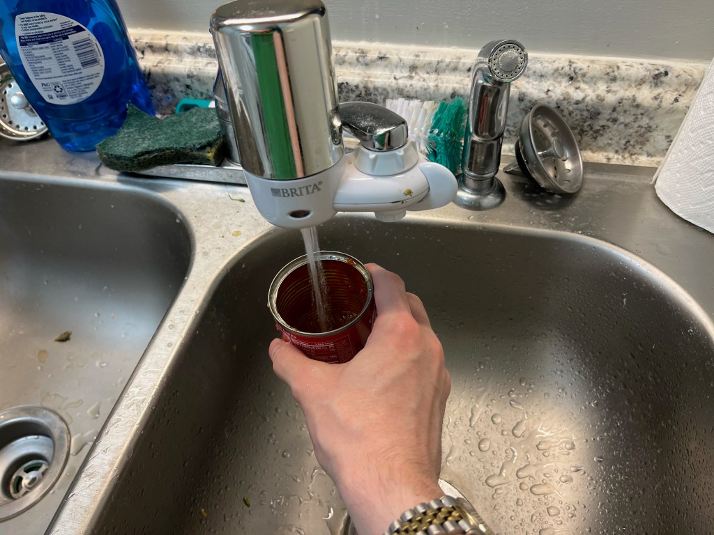 Insert some water into the can and add it to the soup