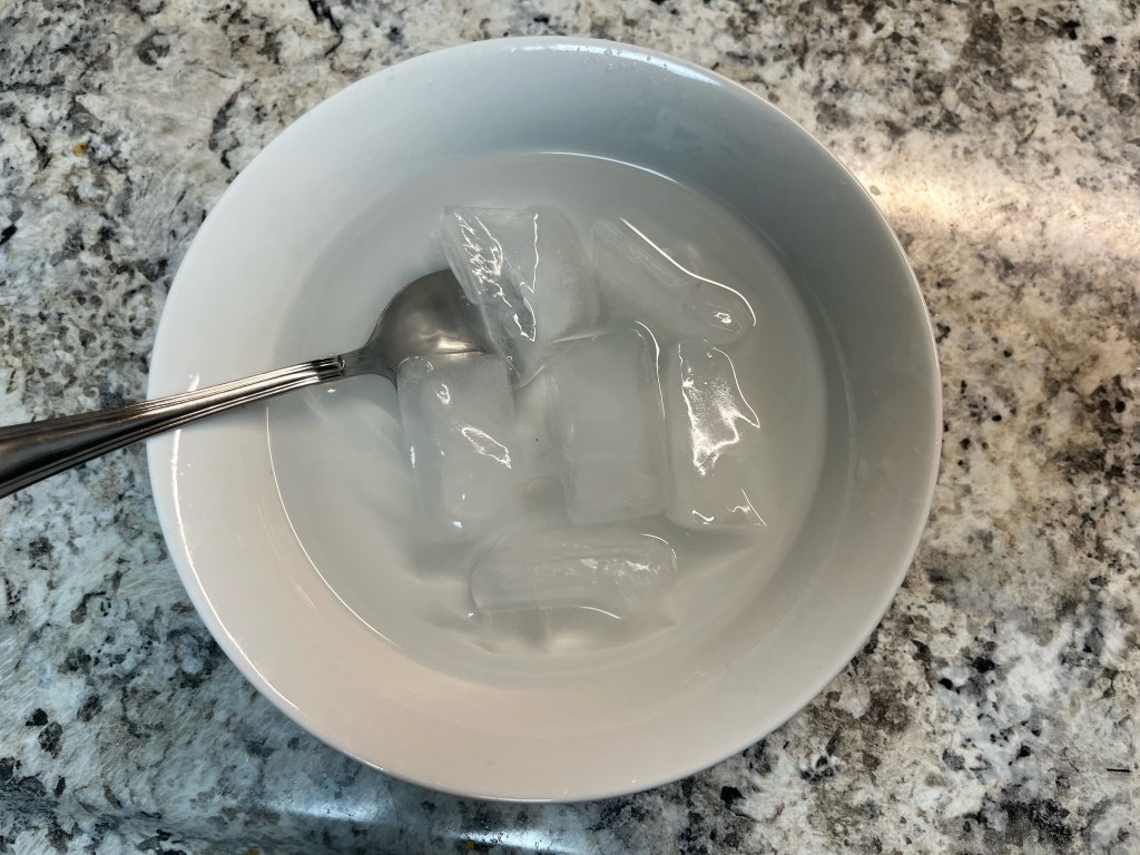 Be careful with this step, because the cubes are very cold and you’re touching them with bare fingers