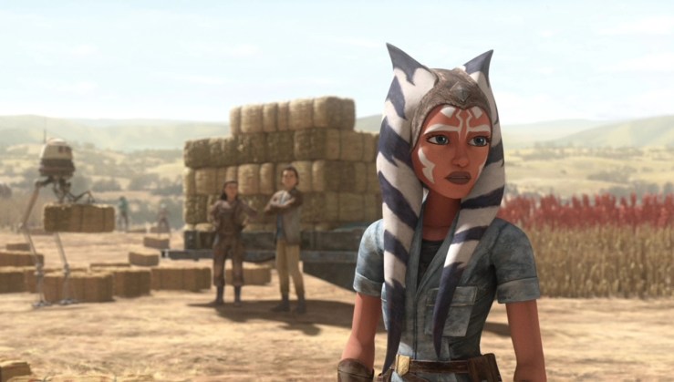 The final episode of this show takes place years after The Clone Wars and Order 66. Ahsoka is in hiding because the Jedi are being hunted. Sheโs on a planet as a farmhand and at one point, a stack of hay bales get knocked over and almost crush someone. She secretly uses the force to move them out of harm and tries to avoid being seen helping.