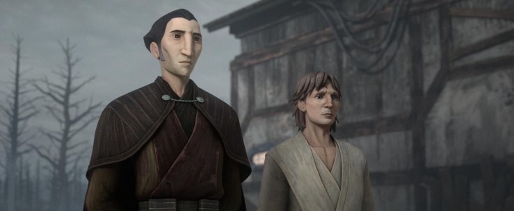 Episode 2 is actually the earliest episode in the timeline, so I watched that first when we got to it. It takes place years before The Phantom Menace and features Qui-Gon Jinn and Dooku, as student and jedi teacher. The two visit a small village where a senatorโs son was being held captive, and they were tasked on negotiations to free him.