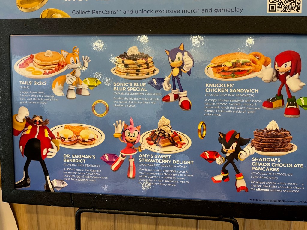 It is April 2024, and the Sonic the Hedgehog team has partnered with IHOP to provide character meals and some downloadable content for games on the Playstation 5, Xbox One, and Nintendo Switch.