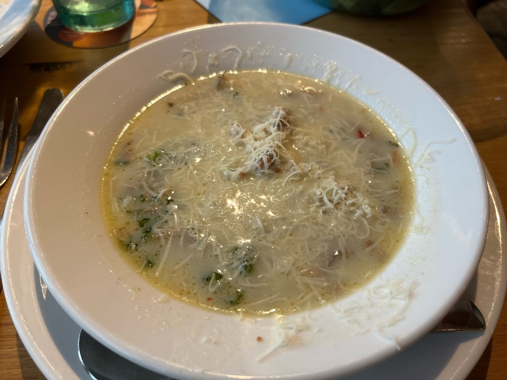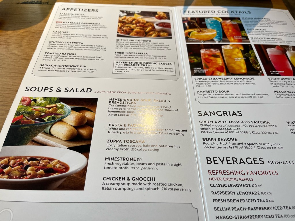 Once you get a seat, order the unlimited soup, salad, and breadsticks, and choose the Zuppa Toscana
