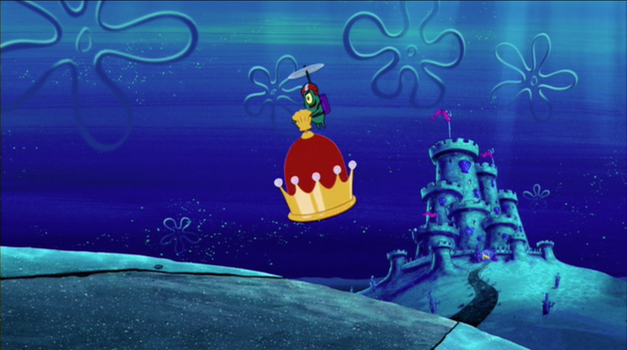 The attack by Plankton comes when he steals King Neptune’s crown and frames Mr Krabs for it. This is the thing that starts the whole quest for the crown in the first place.