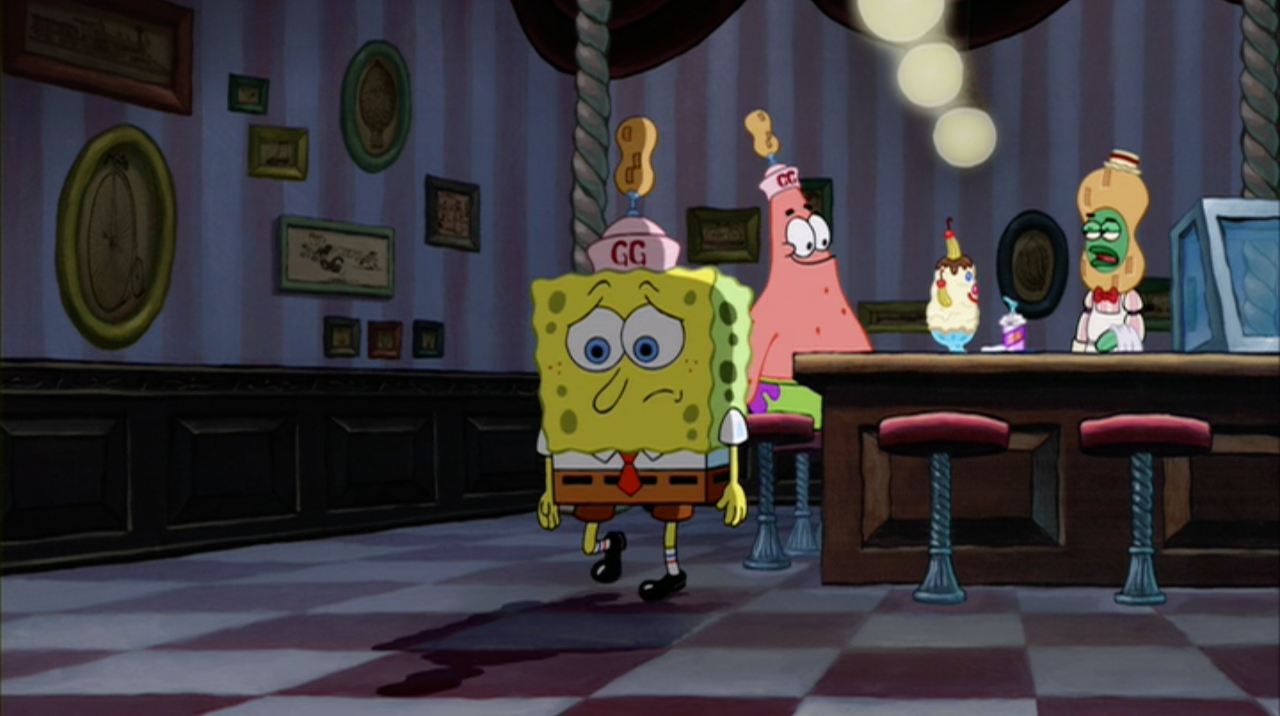 The lashing out in this film isn’t very severe I don’t think, however it does show that Spongebob is out of his element in this tough guy bar.